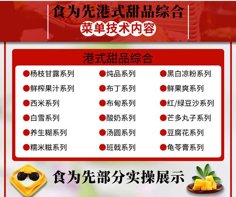 食为先技术团队规模强大,实践操作体验!成立多年以来食为先赢得了广大客户的肯定,至今食为先服务客户数量仍在不断攀升!东莞市食尚部落饮食管理服务有限公司(以下简称:食为先)为东莞市樟木头食为先职业培训学校提供代理招生服务,各地数十大机构同步提供服务!全国直营强实力护航;全套配方无保留传授;餐饮创业全方位指导;装修宣传更省心开业;专业顾问多渠道对接;①掌握技术·收获经验:食为先根据不同市场及餐饮创业需求,进行300+热门小吃技术机构研发和传授。凭借雄厚的规模实力和丰富的餐饮实战经验,还向各位餐饮创业者分享《餐饮创业十八般兵器》,让你一看就会,一听就懂,一品就知,一问就明,拿来就用的餐饮创业干货。②口碑见证·就业帮扶:多年口碑见证,多地相继与政府成立就业帮扶基地。②完善体系·保驾护航:依托总部完善的体系建设,食为先更为众多餐饮创业者提供有创业咨询、品牌合作、食材/厨具便捷采购、线上视频等支持。从项目咨询、项目技术、项目经营等重要环节,全方位为餐饮创业保驾护航。