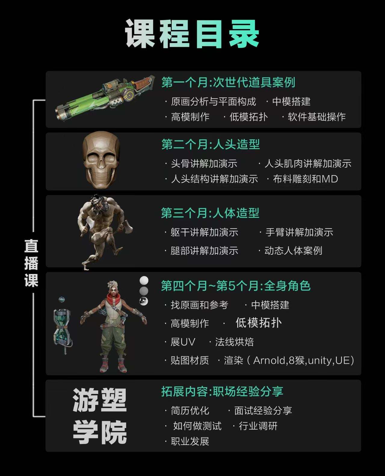 游塑学院正式成立于2024年, 创办的初心是:帮大家在职业发展上少走弯路。自2023年起,我们一直专注于游戏动漫、手办潮玩、影视动画行业的人才培养,以贴近实际项目工作的内容来教学,为行业培养了非常多的优秀人才。学院目前围绕3d建模领域,开设网络课程及线下课程两种模式,课程涵盖角色与场景两大方向,线上班包括:3D角色就业班、3D场景资产班、3D建模基础班、Nomad手办班、人头人体造型进阶班等专业课程。2025年,游塑学院线下校区在重庆永川正式落地,适合新人小白的线下角色班在2025年5月正式开启,未来还将推出线下场景资产班,3D特效班等。