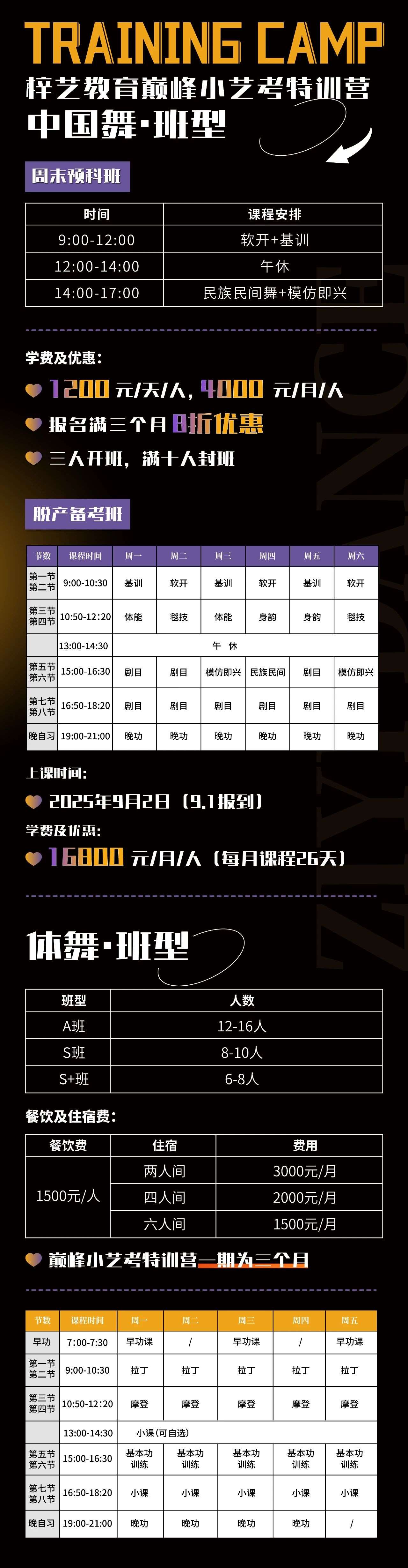 梓艺教育-小艺考集训营——主要为小升初艺考,备考舞蹈附中的学生量身打造。开设专业包括:中国舞专业、国标舞专业、芭蕾舞、歌舞