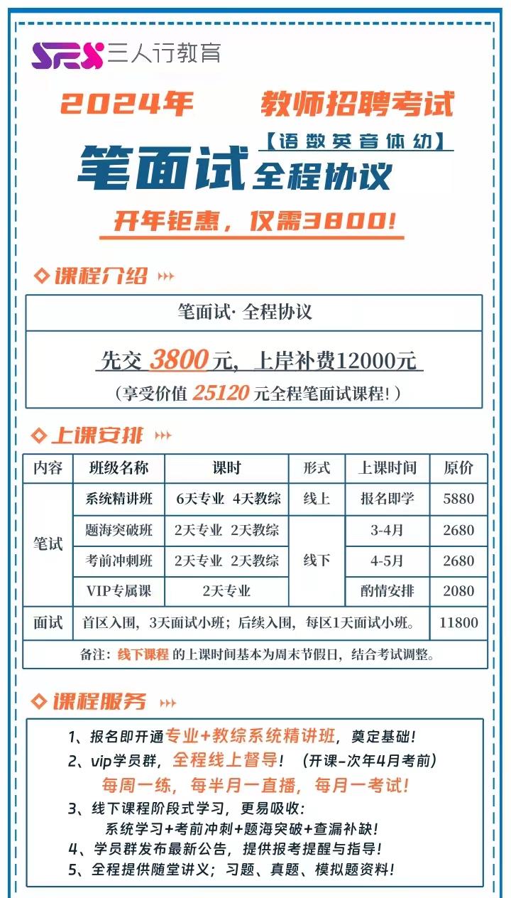 关于三人行三人行教育—“三人行,必有师”。立足于湖南本土,致力于打造湖南教师招聘考试培训个性化高端教育品牌。我们早已在教师考编行业耕耘多年,深谙湖南省教师考编的特点、区县考情的差异化、卷面难度的大相径庭、日趋严峻的竞争形势,也深知市面上眼花缭乱的课程根本无法满足广大考编老师的需求;在课程上,我们打破常规、传统课程培训体系,推出“模块化”“层次化”“区域化”“个性化”教学辅导、“尊享一对一”、“高端私人定制”等课程理念。给予每个学员一套因材施教的教学计划,.大程度地尊重和关注学员的个性差异。 在教学教研上,我们拥有众多明星老师、教育专家和教育研究学者,教学实力雄厚。并积极研究先进教学方法,以精准,精密,精确的教学原则,摒除常规教学的随便,随性,随意形态。以优质的教学质量和教育产品,助力服务对象能力增长,效果提升。我们将持续秉承稳健发展、求实与创新的企业精神,坚持以"服务为导向、教学为根本"的运营理念。凭借着.的师资队伍、专业的服务团队和完善的管理模式,不断整合优秀的教育资源,为学生提供更专业化、个性化的教育服务。为了解决目前市场上课程无区域针对性、无个人针对性、师资匹配程度低、学员后期服务严重溃泛等问题,三人行,由此诞生。我们着力于开发有个性,有针对性的课程;完善高质量的教学教研师资队伍;提升对学员的咨询、督学服务。我们将持之以恒,精益求精,只为迎三人行的广大学子快速上岸!三人行的优势为您带来全方位三对一1、课程顾问:为您带来.匠心的课程体系!2、授课师资:为您带来.称心的教学质量!3、教务老师:为您带来.贴心的督学服务!三人行教师选用原则1、专业功底深厚,熟悉湖南各地考试信息,对考点把握准确到位;2、资深教育背景,历界教师招聘考试考官,评分得分更专业指导;3、教学经验丰富,擅长因材施教,以更大耐心和专业辅佐您上岸;三人行给您的承诺1、对教务服务安排不贴心可*;2、对教学师资匹配不满意可*;3、杜绝虚假存在夸大其词可*;