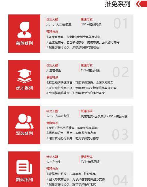 中公教育是大型的多品类职业教育机构。公司勇担时代使命,持续创造新的 市场,以友善利他之心服务社会。 面向广大知识型人群,公司主营业务横跨招录考试培训、学历提升和职业能 力培训等板块,提供100多个品类的综合职业就业培训服务。公司在全国1000多 个直营网点展开经营,深度覆盖300多个地级市,并正在快速向数千个县城和高 校扩张。 中公教育主要服务于18岁—45岁的大学生、大学毕业生和各类职业专才等 知识型就业人群。这个巨大群体广泛分布于全国各地、各级城镇和各行各业,就 业和职业能力提升是他们的两大核心诉求。职业能力高低决定了劳动生产力的高 低,是中国能否成功跨越“中等收入陷阱”的关键。而就业既是经济增长的晴雨 表,也是撬动整个职业教育领域的杠杆支点,更是职业教育机构竞争的赛场。由 此,越能较大范围、较大程度上靠近就业需求的职业教育机构,越有机会转动多 品类增长飞轮,获得统领职业教育全局的优势地位。 经过长期的探索与积淀,中公教育已拥有超过1000人的规模化专职研发团 队,5000人的大规模教师团队,总员工人数13000多人。依托卓越的团队执行 力和全国范围的垂直一体化快速响应能力,公司已发展为一家创新驱动的高增长 企业平台。中公考研是中公教育旗下品牌,秉承着——“专业、高效、深度、服务 ” 的办学宗旨,依靠强大的师资阵容和深厚的自主研发实力,以学员服务为根本,以 革故鼎新为动力,以追求卓越为目标,致力于为广大学员提供专业的教学服务。 中公考研产品齐全,为广大考研学子提供全套复习辅导课程,包括周末乐学、全日 制集训营、VIP一对一公共课、VIP一对一专业课、精品网课、考研直播课、推 免、留学等一系列产品,满足不同考生的个性化学习和备考需求。 中公考研拥有一支深耕考研教学多年的资深专业辅导团队,下设政治、英语、 数学、联考综合及专业课等40+考试研究院,拥有门类齐全的全职教研师资团队, 教授科目涵盖考研政治、英语、数学、管理类联考综合(初数、逻辑、写作)、专 业课(经济学、教育学、法学、管理学、心理学、医学、艺术学、MTI、计算机、 国际中文教育硕士等)及推免、复试、调剂等。中公考研突破性实现辅导行业师资 团队的专业化、科学化分工,旨在为学员提供专业、高效的考研辅导。 中公考研将始终秉持“学员的事就是最重要的事”这一理念,助力考研学子扶 摇直上,奔赴梦想。TOP教学体系 中公考研研究院独创"TOP"教学系统,为考研学子量身定制全方位的教学学习系统,针对全国研究生入学考试的复习特点、考试要求和发展趋势,中公考研考试研究中心进行了深入研究,打造了系统化、精细化、切片化的教学体系,旨在实现*精准(Targeted),*高效(Optimal),*专业(Professional)的辅导效果,经过多年教学实践,已帮助上万考生轻松备考、实现考研目标。 十项贴心精细服务体系 中公考研为考研学子提供贴心精细的全程服务,全方位的保障,通过“38人公共课小班课、专业课1对1授课及答疑、全日制学管师督学、择校择专业、高分作文批改、标准复试课程、精确诊断面授答疑、在线平台答疑、在线补课系统、全套初试辅导书讲义”十项服务,帮助考生缔造高分佳绩,实现上岸梦想! 业界*强大的师资团队 中公考研拥有一支业内人数*多、阵容*强的专业辅导团队,强大的师资队伍现已拥有逾350名专职辅导教师。中公考研教研中心汇集了以彭学军、李擂、杨凤芝、白纯洁、张静老师为核心的业内辅导专家,以及杨武金、谷衍奎、张能彦、赵丽英等业资深辅导专家,拥有深厚的考研专业背景,融汇了中国科学院、北京大学、清华大学等国内学校的文化特质,率先实现了考研辅导行业师资团队的专业化、精细化、科学化分工,下设政治、英语、数学、专硕、及专业课考试研究院,为考生的学习备考提供专业化、全方位的指导服务。 此外,中公考研还与人民日报出版社合作建立“考试编辑中心”,同人民日报出版社,世界图书出版公司,立信会计出版社,西南财经大学出版社等建立了良好的战略合作关系,每年出版发行千余种图书产品。是国内*大的独立知识产权教育服务产业实体!