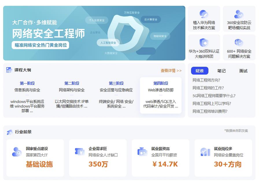 1.网络安全行业发展及课程介绍:网络安全行业/岗位解读、教学环境介绍、学习方法解读、高效学习工具