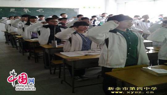“超越自己,奋发向上!我相信!我一定能行!”近日,江西新余四中初二年级召开主题班会,各教室里回荡起慷慨激昂的誓词。学生们个个举起右手,齐声宣誓,气冲斗牛,场面壮观。