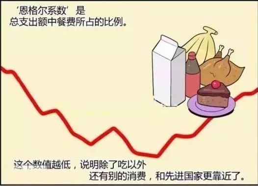推而广之,一个国家越穷,每个国民的平均收入中(或平均支出中)用于购买食物的支出所占比例就越大,随着国家逐渐富裕,这个比例呈下降趋势。