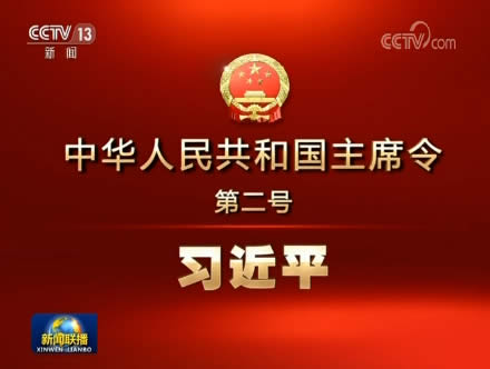 国家主席习近平19日签署第二号主席令。第二号主席令说:根据中华人民共和国第十三届全国人民代表大会第一次会议的决定: