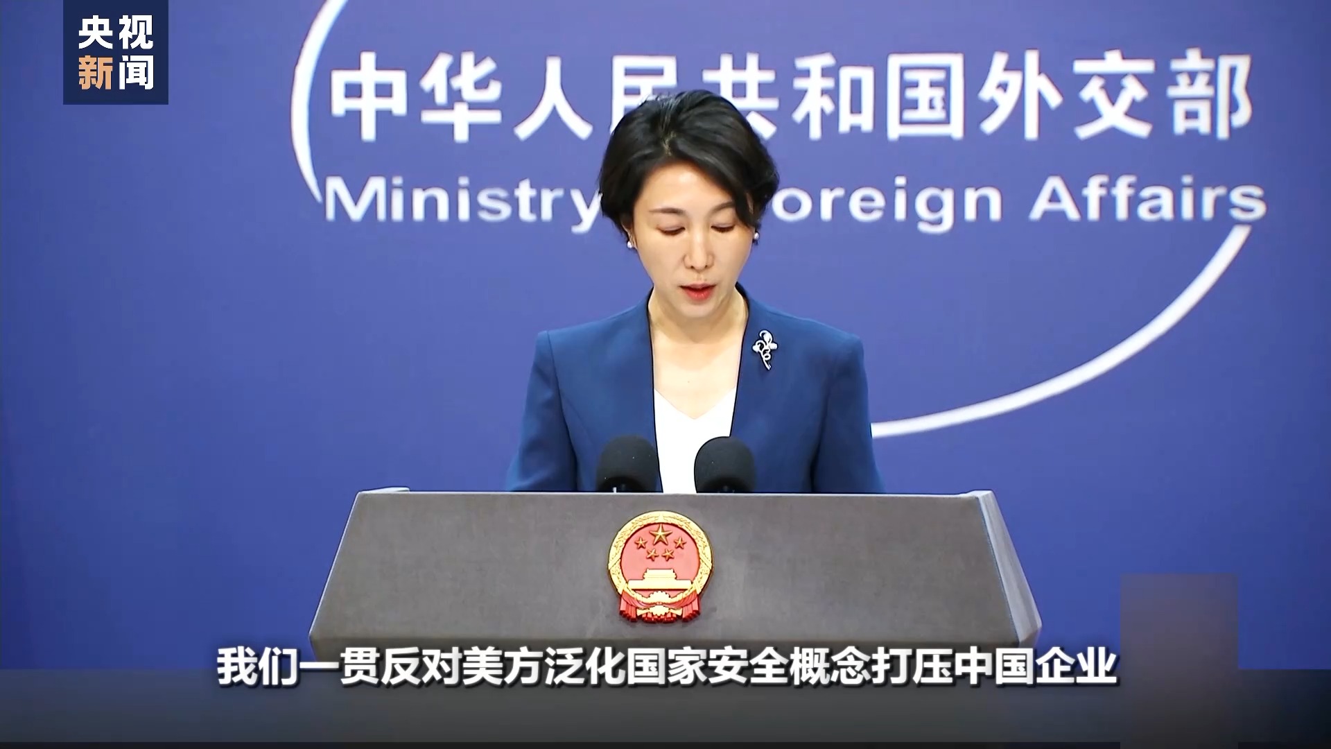 外交部发言人 毛宁:我们一贯反对美方泛化国家安全概念打压中国企业,这种歧视性、不公平的做法,破坏自由贸易原则和国际经贸规则,扰乱全球产供链稳定,不符合任何一方利益。