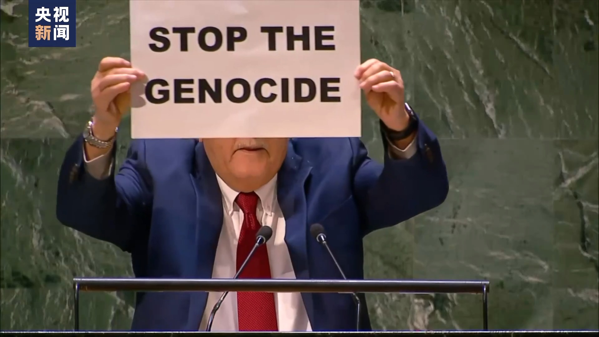 巴勒斯坦常驻联合国代表 曼苏尔:立即停火,立即停火,立即停火。以及,停止种族屠杀,停止种族屠杀,停止种族屠杀,针对巴勒斯坦人民和孩子。