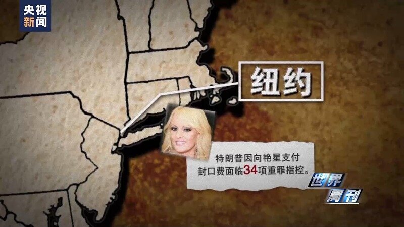 在纽约,特朗普因向艳星支付封口费面临34项重罪指控。