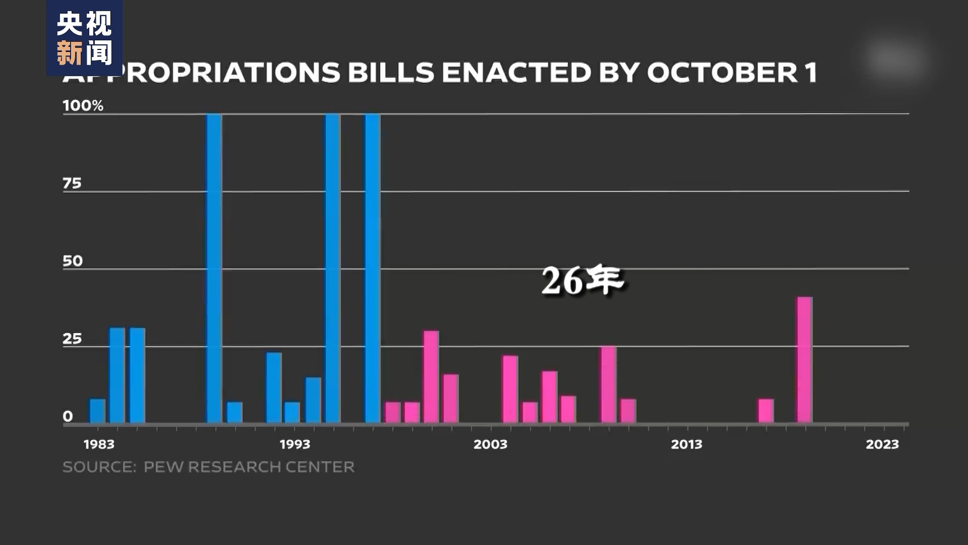 数据显示,美国第118届国会在2023年颁布的立法数量不足100份,创下历届国会的最低效纪录。而从长期看,美国国会已连续26年没能如期通过下一财年的预算。