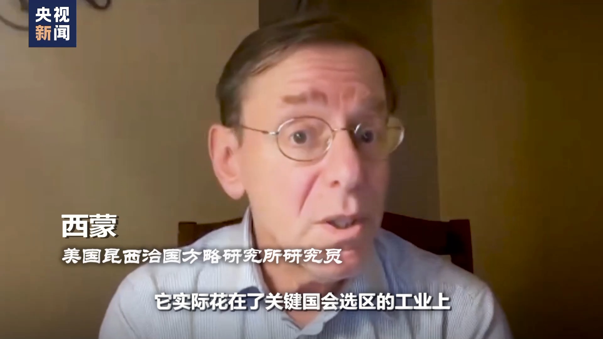 美国昆西治国方略研究所研究员 西蒙:所以这就像一个“自舔的冰淇淋”。你给出去的所有这些钱,它实际花在了关键国会选区的工业上。