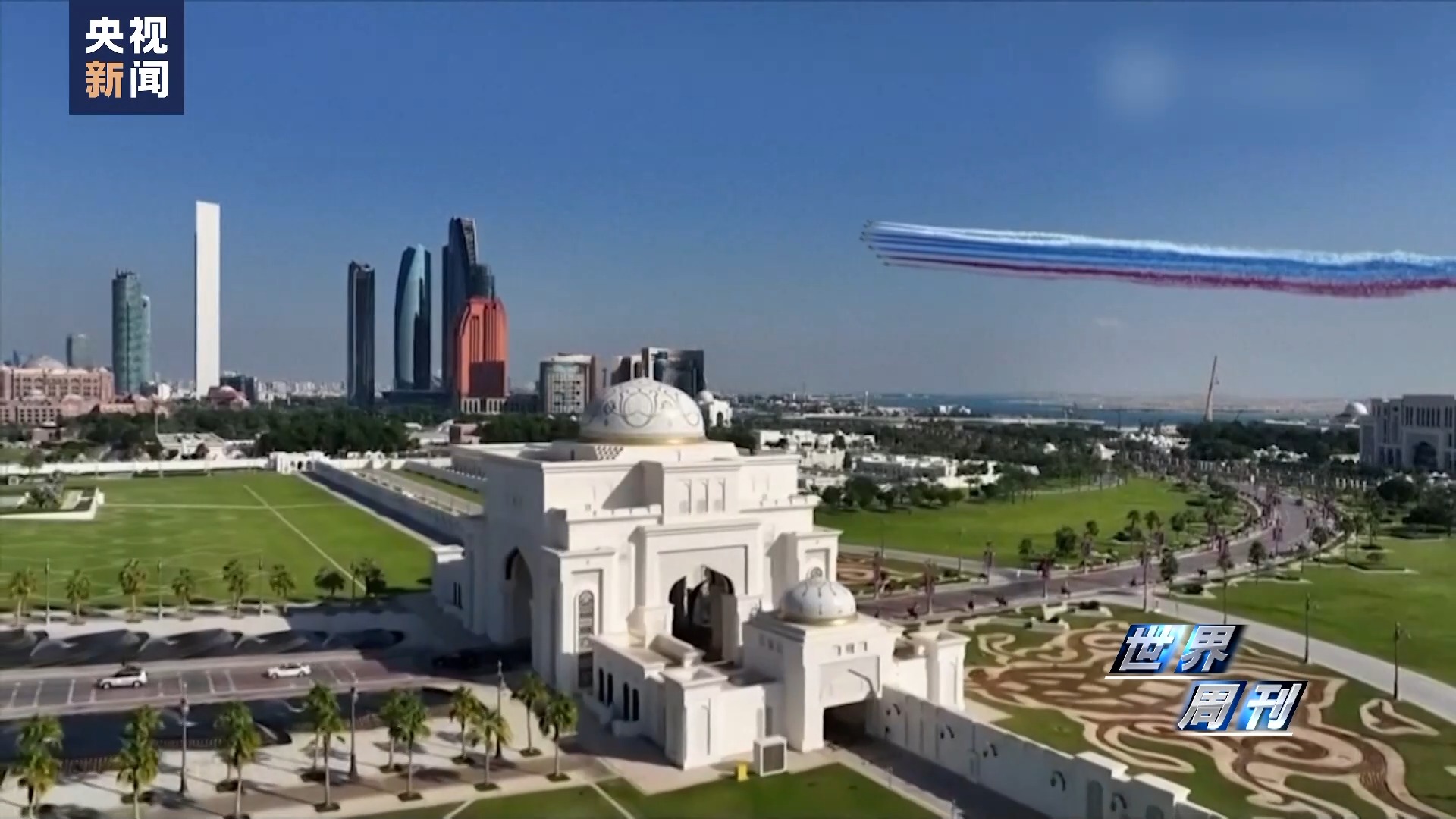 12月6日,阿联酋,特技飞行表演队在总统府的上空画出俄罗斯国旗,总统穆罕默德亲自到机场迎接普京。一天之内,普京闪电般地访问了阿联酋和沙特,沙特用最高规格的骑兵护送他前往皇宫。 7日,普京又在莫斯科迎接伊朗总统莱希。