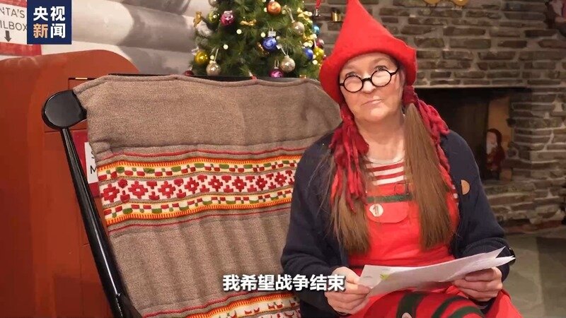 邮局工作人员 丽塔:这是戴安娜写给圣诞老人的信。你好,圣诞老人,我是戴安娜,我今年10岁。我想要一个用珠子做的包,更重要的是,我希望战争结束。