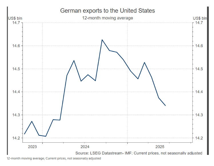 最新数据显示,欧盟7月份对美国的出口较上年同期下降4.4%,而欧盟经济引擎德国8月份对美国的出口则下降了20.1%。