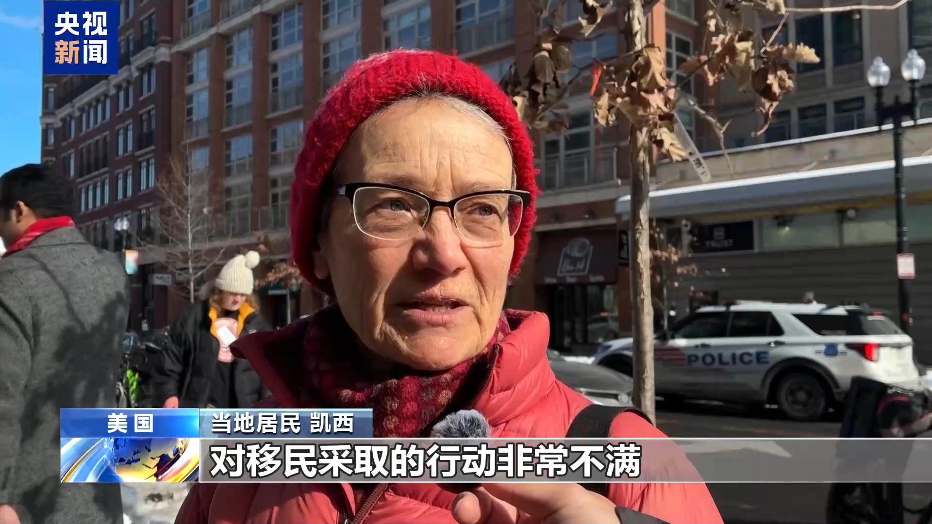 央视记者 刘旭:我现在是在美国首都华盛顿特区的一处居民区。这里人口密集,居住着大量不同族裔的移民。这里也有大量的商业活动。今天尽管室外温度在零下10摄氏度左右,在我身后仍然有上百名社区居民在这里集会。