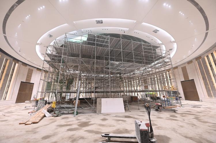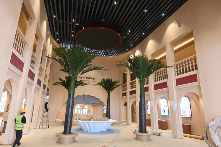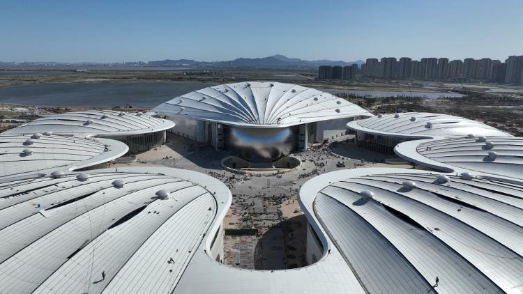 中建八局发展建设有限公司青岛·上合之珠国际博览中心项目经理付林告诉记者:“面对超常规的工期压力与建设标准,我们从今年2月8日正式开工,总工期235天,通过了规划、竣工验收等各环节,现在正处于工程建设的收尾阶段,运营布展单位已经进场开始布展,即将于9月30日启动运营。”