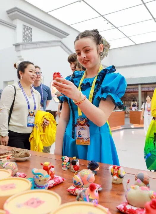 赛场之外,正逢“东方雅韵 遇见精彩”天津文化遗产展对外开放。泥人张、杨柳青年画等津味十足的文化展台吸引了不少选手驻足体验。在“葫芦庐”展位前,来自埃及的王美林拿着一个卡皮巴拉葫芦挂件爱不释手:“这个太可爱了,又萌又有创意!我打算把它挂在我的包包上。”