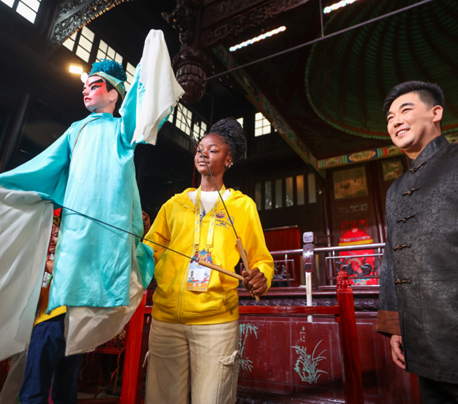 体验环节,选手们纷纷走上台前,亲手操纵木偶,“这个表演需要天赋,它非常独特。我能够通过木偶戏了解到中国的文化,这是一种非常有趣的形式。”来自安提瓜和巴布达的佳娜表示。