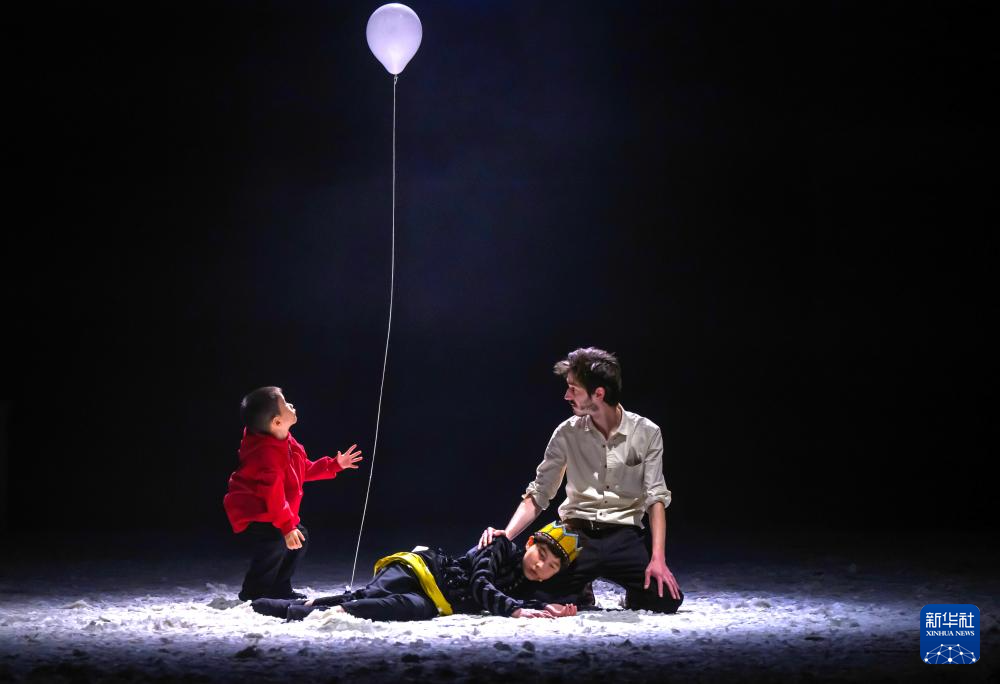 11月15日,演员李一辰(中)、金珍禾(左)、弗朗索瓦在音乐戏剧《小王子》中表演。