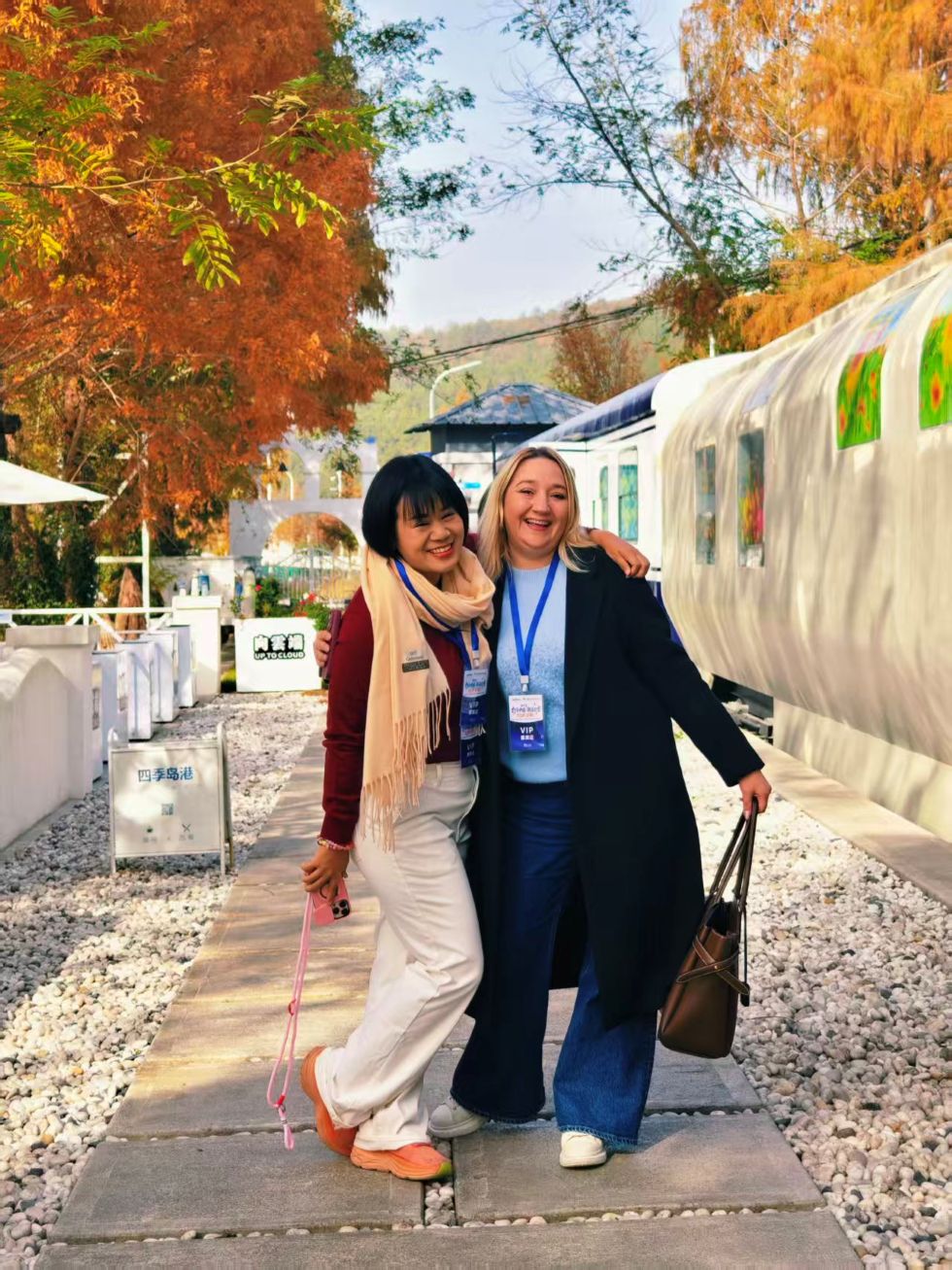 网红博主在向云端・世界观光列车微公园合影留念 摄影 赵博