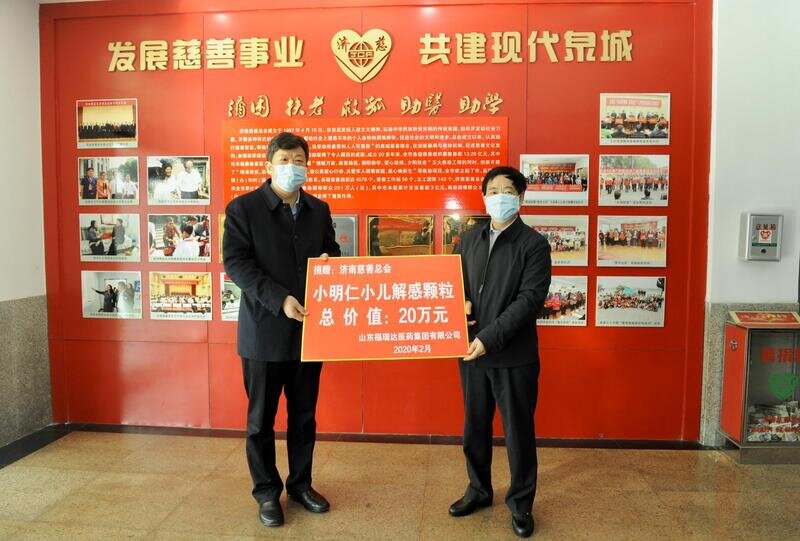 此次捐赠的物资为福瑞达医药集团旗下山东明仁福瑞达制药股份有限公司(简称明仁福瑞达)生产的小儿解感颗粒。