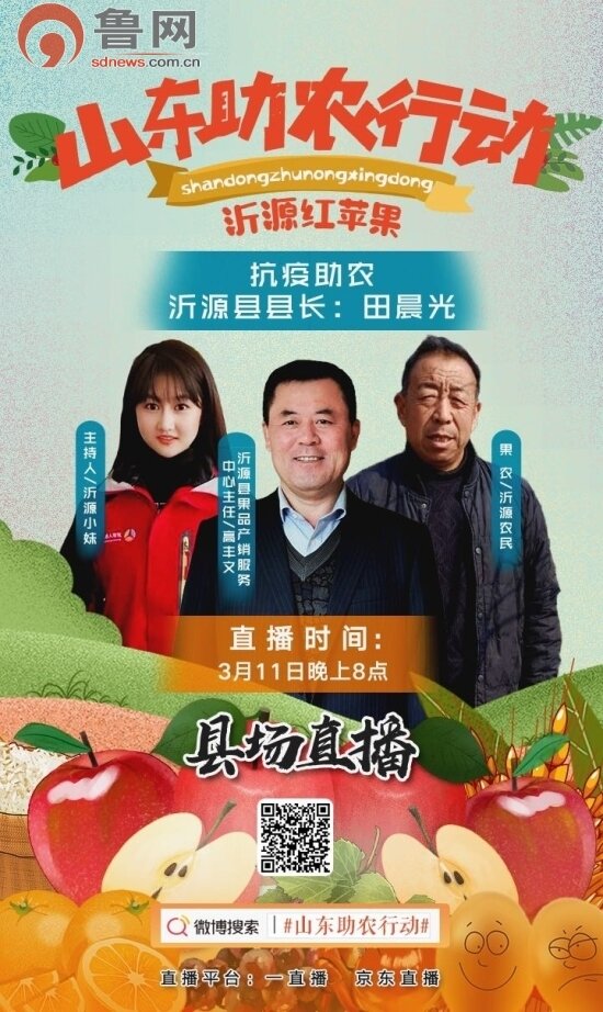 秉承“拥军支前”的传统,在新冠肺炎疫情发生后,沂源县捐出20吨“沂源红”苹果,为战“疫”一线的齐鲁儿女送平安。但突如其来的疫情,使得苹果的销售渠道不可避免地受到一定影响。为此,“县”场直播来了。 据悉,本次直播及“云”销售,沂源县联合新浪山东共同推出,充分利用微博社交媒体的优势,为沂源迅速搭建新的销售渠道,以快速催生销量的提升。
