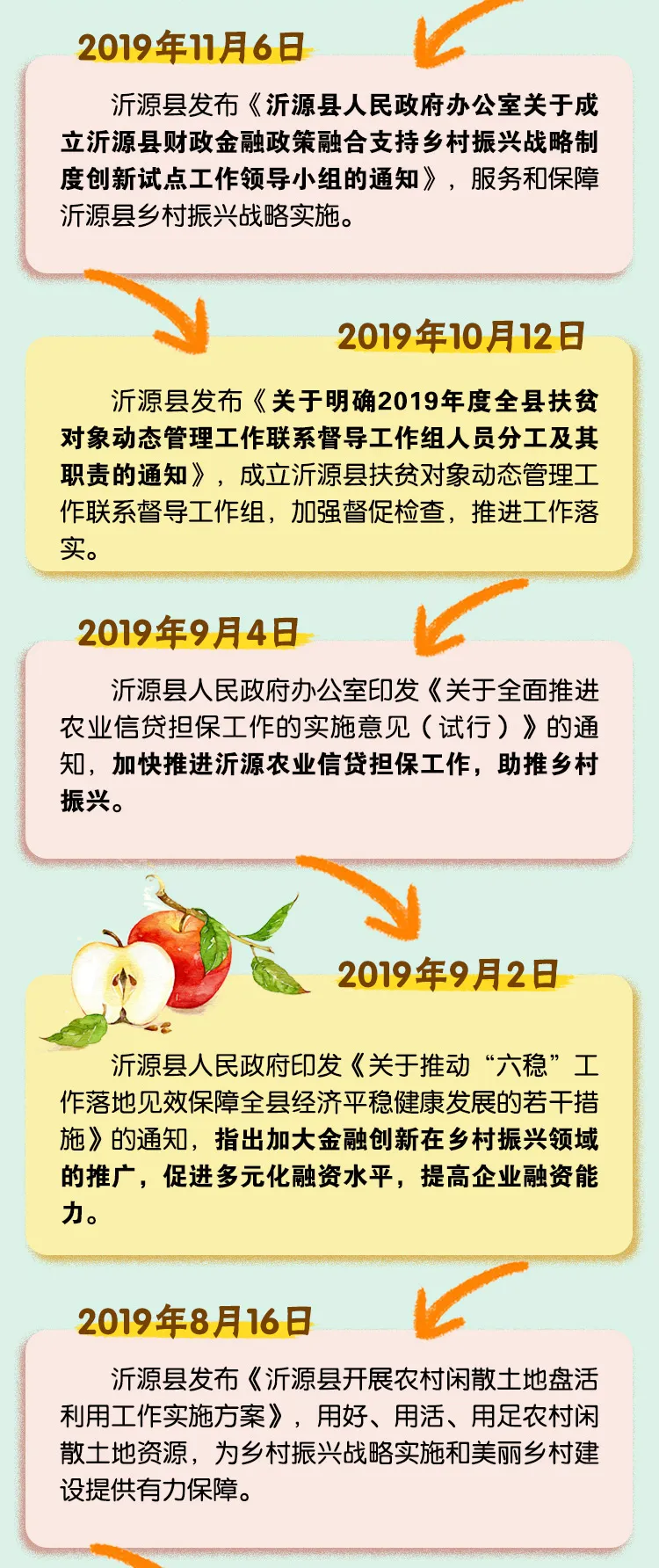 回望2019年至今,沂源在“乡村振兴”战略下,连续推出诸多实施政策,从政策到方案,从意见到通知,对沂源乡村“无缝”式提出并实施了各项举措,值得回顾。