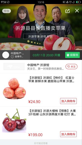 “沂源红”苹果作为沂源,乃至淄博的“网红”农产品,县长亲自直播带货,既是对沂源农产品质的保证,也是在疫情背景下的,保证农民“稳”增收的责任与担当。