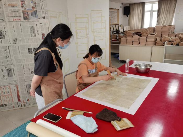 在科创基地一角,从事古籍文献修复的山东迈越文保科技有限公司吸引了记者的注意。在公司操作间内,几名工作人员正围着一张“千疮百孔”的文献进行修复。“我们首先通过分析检测评估文献状况,然后针对不同情况出台保护修复方案,在对文献进行脱酸后,通过‘溜、补、接、托、揭’等技术进行修复。”公司负责人向记者说道,“其中脱酸是我们的核心技术,由于技术相对小众,同时专业性又相对较强,因此在技术成果转化方面,我们需要基地的孵化和培育。”
