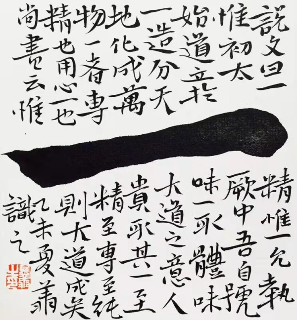 书中正文为100篇短文,相当于对书法的100个角度特写,又相当于提出100个问题,给读者100个启发。每篇文字看似各自独立成篇,连缀在一起又表达了一个完整的作者的书法观。另外,书中与文章对应的还有100件书法作品,都是两言大字,为圆笔北碑的泰山经石峪书体,下面配有一两行朱墨帖学小字,内容逸趣横生,章法新颖,两相对照,亦古亦今,别开生面。