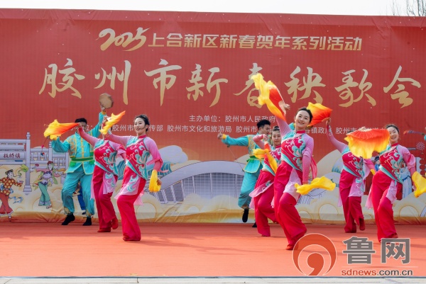 在主广场,胶州秧歌《小嫚小嫚你快扭》正在上演,来自胶州市小白鸽艺术学校的小演员们“扭”得热烈,引得现场观众阵阵掌声,将现场气氛推向高潮。
