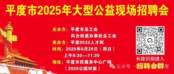 青岛平度:2025年大型公益现场招聘会即将开启 3000多工作岗位等您来