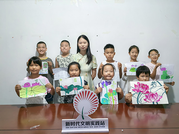 创意美术课上,一幅幅以“夏日荷塘”为主题的创意画作铺满展架。在专业美术教师的启发式教学下,小志愿者与孩子们结成创作伙伴,从观察荷花的形态特征,到理解色彩的情感表达;从学习基础的绘画技法,到发挥天马行空的想象力,每个创作环节都充满欢声笑语。“孩子回家后还主动给我们讲解色彩知识,这种成长太珍贵了。”一位家长说。