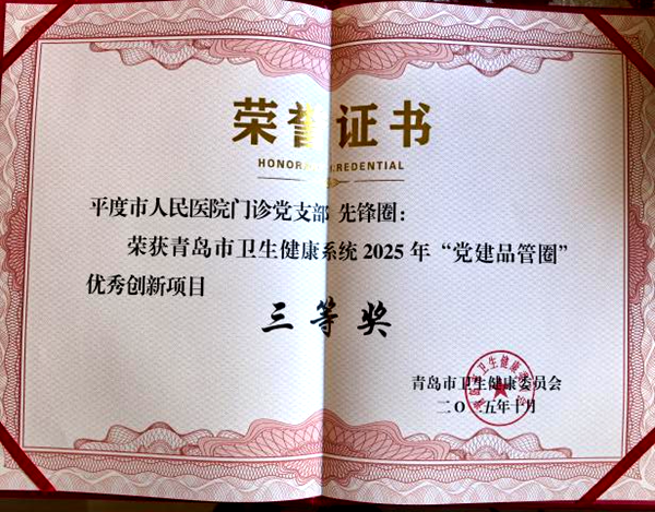 平度市人民医院“红色脉动 心心向荣”先锋圈荣获市卫健系统“党建品管圈”优秀创新项目三等奖