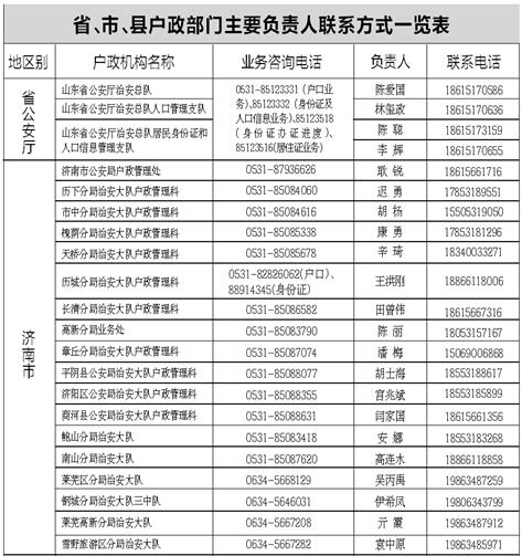 鲁网2月26日讯 记者昨日从省公安厅获悉,为贯彻落实全省“担当作为、狠抓落实”工作动员大会精神,省公安厅即日起向社会公开省、市、县三级户政部门负责人电话以及各地户政部门业务咨询电话,为群众提供全天候、全时空服务,进一步拓宽群众办理户口、居民身份证咨询、监督、投诉渠道,更好地提升群众获得感、幸福感和满意度。
