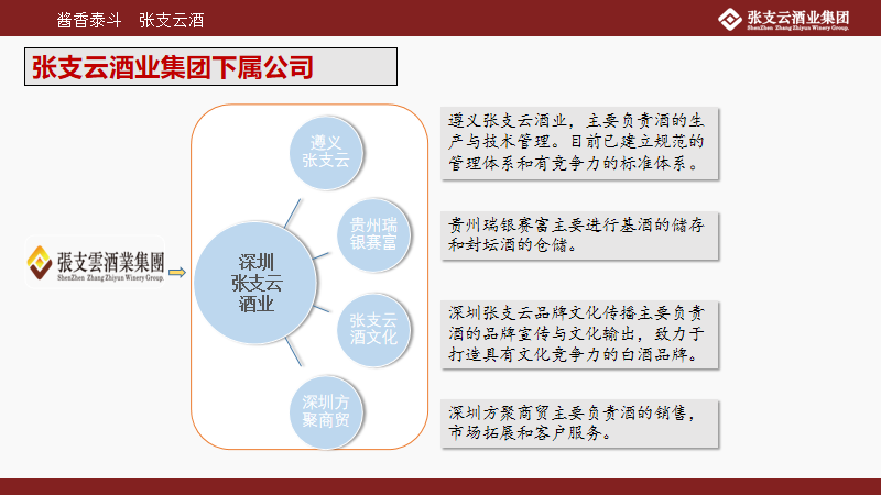 鲁网8月25日讯 深圳张支云酒业集团公司成立于2011年,由10余位优秀企业家共同投资成立,总部位于深圳前海自贸区。集团下属有深圳方聚商贸有限公司,遵义市张支云酒业有限公司,深圳张支云酒文化传播有限公司和遵义市瑞银赛富有限公司。公司以“弘扬酱酒文化,成就百年基业”为愿景,以“造福人类美好生活”为使命,致力于为企业家群体奉献一款高品质的放心好酒。