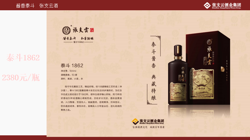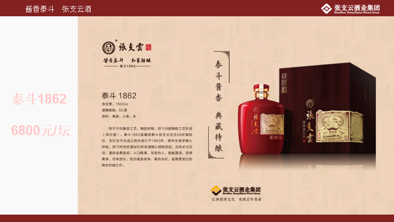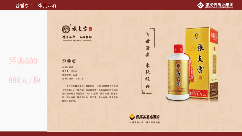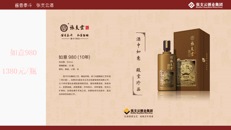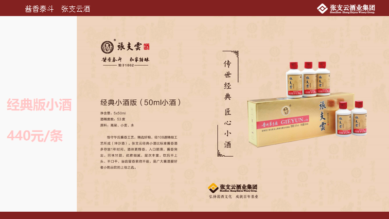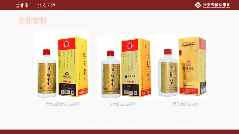 张支云酒业以“诚信,创新,品质,共赢”为价值观,以张支云先生“八十年人生只为成就酱香好酒”的匠心精神,致力于成为企业家定制用酒的专业服务商,为企业的形象和文化传播提供与众不同的解决方案。