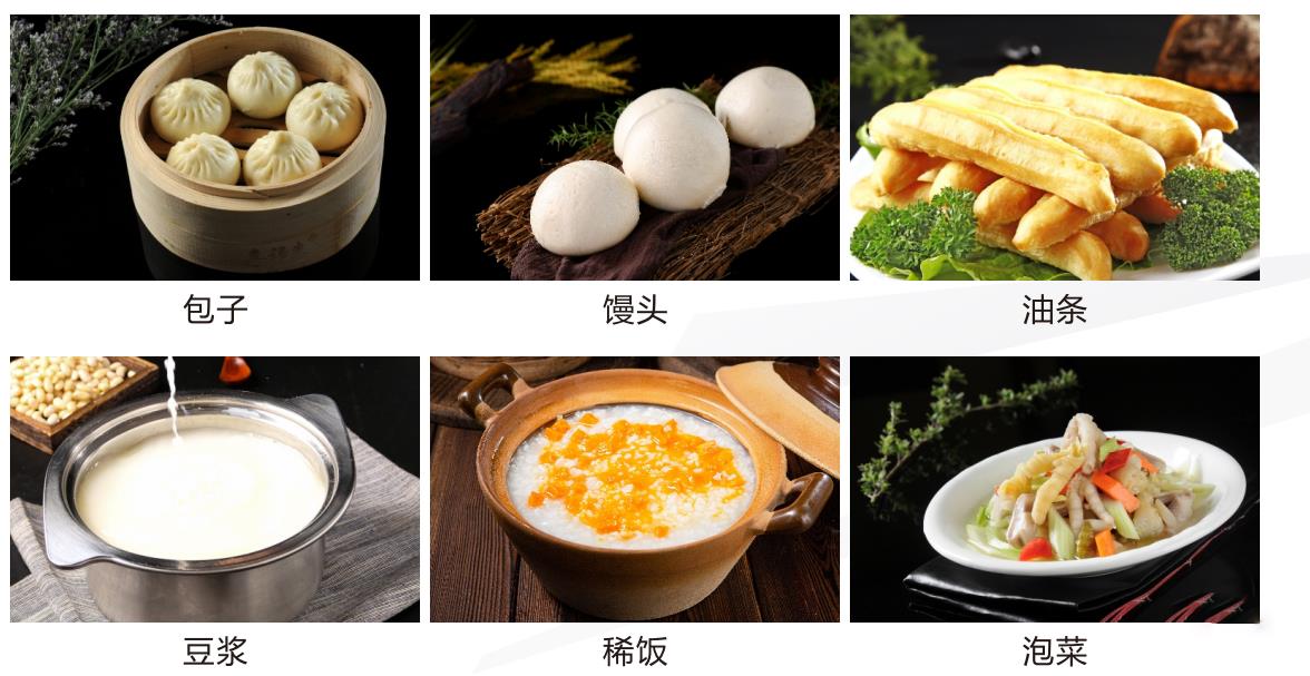 油条,包子,馒头,豆浆,稀饭,泡菜