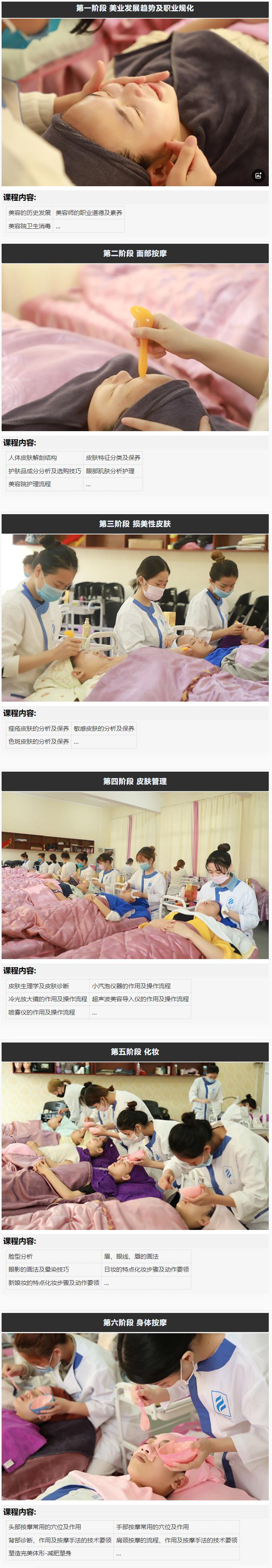 通过专业理论教学使学员掌握与美容技能,美容服务,通过专业技能培训,使学生熟练全套美容美体服务,及美容院常见的修饰美容、仪器护肤等技能、达到基本独立上岗的水平。