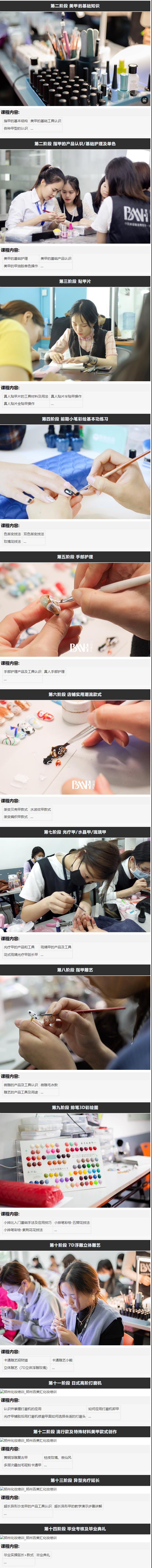 百美汇美甲高阶研修班,为打造国际高级美甲师而开设。课程涵盖高阶动漫卡通手绘、9D雕艺美甲、俄式单色、琉璃甲、水晶延长甲、3D大排笔彩绘、打磨机等市场热门美甲技法。