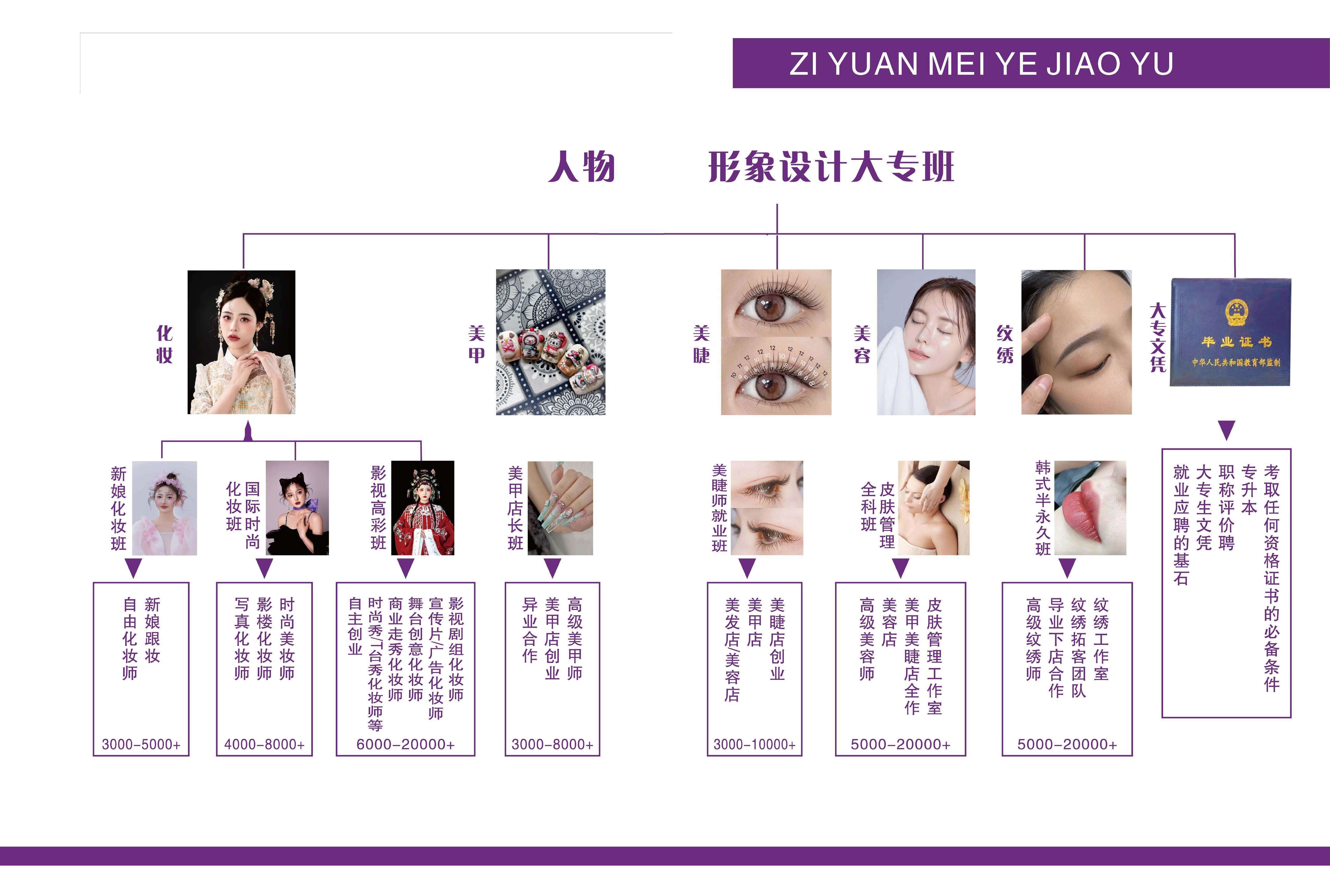 包含化妆、美甲、美睫、美容、纹绣等全科课程