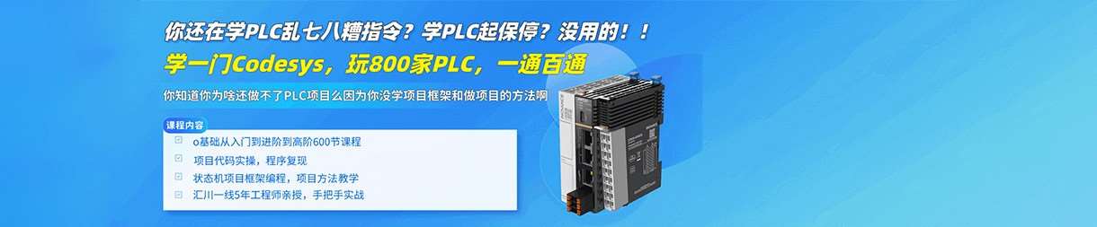 01 PLC初学者的困惑很多PLC初学者感到疑惑,自己已经很努力了,看了很多PLC视频课程,或者是报了一些PLC培训机构线下培训班,学了一大堆乱七八糟的指令或者各种单个功能,花费了不少时间,对于基础的一些专业名词也有所了解了,但是拿到一个项目依然觉得老鼠啃天,感觉无法下手,这到底是什么原因呢?我们学习PLC最终的目的就是能独立写PLC设备项目程序,能够独挡一面,成为合格的PLC电气工程师,提升自己的工资天花板,但是入行学习的大多数人会发现,距离这个目标很远!这到底是为什么?02 初学者困惑的答案其实答案很简单,因为你压根没有学习编写项目程序的方法啊!你的学习方法不对啊!你天天看人家讲各种乱七八糟的指令,看人家读PPT,看人家搞起保停,看人家摆弄中间继电器。有些人不服气,我会跑马灯程序啊,星三角程序啊,起保停啊,常用的指令啊!是的,这些你确实会,但是你会的这些跟不会有多大区别呢? 你学的这些玩意是教师爷混时间的!事实摆在那里的,只是你不明白,因为你是小白,不懂。找工作的时候人家不关心你会不会起保停,人家关心的是你能不能拿下一套设备的完整项目程序,能不能独立做出来,。现在自动化设备已经不是起保停程序能搞定的了,一套完整设备有固有的框架结构的,手动控制程序、手动示教程序、回原控制程序、自动控制程序、参数初始化程序、EtherCAT总线初始化、参数赋值程序、工位的任意屏蔽、IO输出程序、单元的循环、单步运行、模块化编程、面向对象封装功能块等等。这些结构你听都没听过,学几个指令怎么可能就会了?!你又不是神童,非要把自己搞成神童,偏偏我们这一行你是装不过去的,你到底会不会,给个项目写一套程序就知道了!03 初学者浪费了太多时间和精力所以大多初学者在指令等基础知识上浪费了太多的时间,但是正真的基础知识也不会,因为你没有放到实际项目案例上应用,让搞个PLC选型,连同品牌下同系列的PLC型号啥功能都说不上来!所以你学一些干巴巴指令记也记不住,用也不会用。其实指令这些基础知识不用记忆,用的时候查找手册就可以了。这也是我们常说的 工业自动化是开卷的,我们需要掌握科学的问题分析方法,然后根据现象去分析,梳理出可能的原因后再去做排除法,最终就能定位到我们所需要的问题的答案上。所以一切都是浪费了自己大把时间,对于某些朋友来说也是没办法的,因为自己接触的资料就是这些,全是念PPT,讲指令一类的,另外大部分培训机构的水平都很菜,很多老师都是应届生培训一段时间没有实际项目经验就开始教学员,你想想跟着这样的老师你怎么可能学的好!而我们实操派的老师,是汇川工作了5年以上的工程师出身,都是实打实做过很多小型PLC脉冲控制、中大型PLC-codesys、EtherCAT总线多轴运动控制实战项目的,选对老师,才能保证你在这个行业能走的远!走的顺!04 初学者到底该怎么学?对于个人到底该怎么学PLC,才能达到独立做项目水平,能独当一面,实现零基础小白到PLC电气工程师的蜕变,提升自己的工资天花板?个人建议跟着实操派系统化全科班课程走一遍啥都会了!系统化大课全科班,把该讲的知识点都用项目的方式讲透了,实操派课程通过PBL项目式,循序渐进的带大家做了很多个项目,逐步打怪进阶,从零基础入门开始到进阶到高阶项目式教学,不像传统培训机构讲一堆没用的指令,都是通过实战项目,在实操中编程学习PLC。如果是有经验的小伙伴,就能发现其实一套完整项目程序用到的指令其实就常用的那么些个!对于PLC初学者而言,入门学习方式就是能找一套从0开始讲解怎么写一套完整项目程序的课程,我说的完整项目框架的编写课程,什么是完整框架的程序?就是包含点动控制、示教程序、回原控制、自动控制、报警控制、参数赋值控制、IO输出、总复位初始化,单元循环,工位任意屏蔽,单步运行,空跑、暂停、循停、急停、手自动任意切换等完整功能的,成熟的,能够稳定运行的实际项目程序。你想想,你连一套完整项目程序的框架都不知道,连一套完整项目程序怎么来的都没见过,你怎么可能写得了程序了? 实操派课程都是从0开始边写边讲一套完整项目程序的编写过程,课程中应用的程序是经过多年验证过的项目程序框架,初学者可以直接套用!05 实操派的课程理念我们的课程理念,教会学员“做菜”,从第五章开始都是项目式实操培训。不像传统培训机构讲一堆没用的指令!就像做菜,市面上好多培训机构告诉你各种原材料,讲原材料介绍一堆,但是怎么做菜的死活说不清楚。他们讲一堆乱七八糟的指令,而我们通过讲项目串知识,教大家实用的项目编程框架,然后告诉大家如何查手册,如何自学习!我们的课程开发逻辑都是“总分总”式逻辑。通过项目任务书,讲清楚当前课程项目要实现的具体功能(以终为始);然后对当前项目进行模块化拆分,分而治之,模块化课程开发(和编程思想一样);最后项目进行调试总结,知识回顾(总)而且课程中穿插各种实操,手把手教学,都是项目式实战。从简单小项目10来行代码 -> 上百行代码->几百行代码项目->上千行代码项目->几千行/.上万行 代码项目,保证都是一行一行带大家敲的,给大家分析清楚写项目程序的内在逻辑,只要大家能认真跟着我们课程节奏实操,可以做到全部项目功能复现。06 行业发展的大趋势,学会顺势而为目前行业主流趋势是