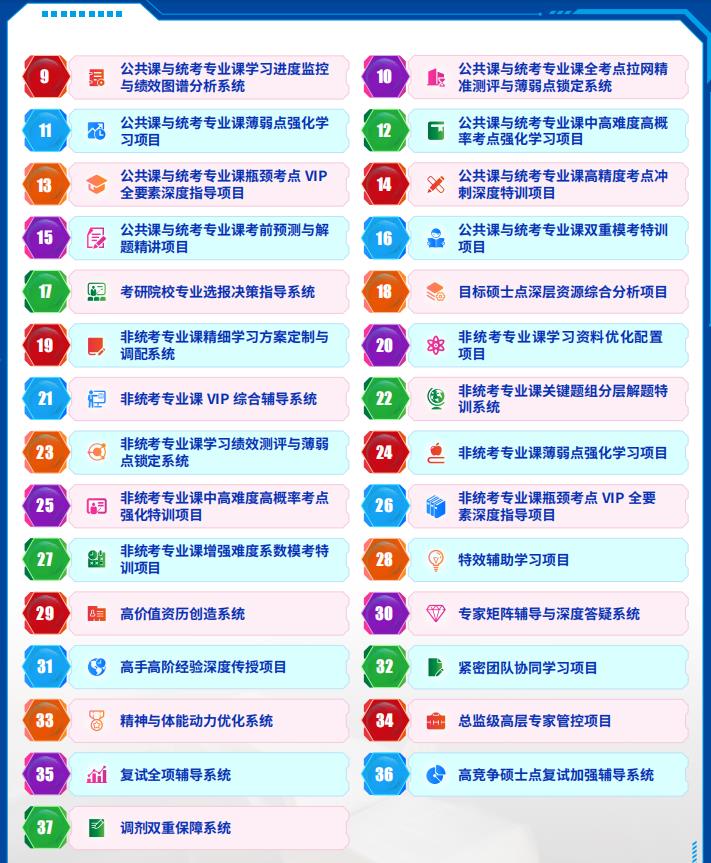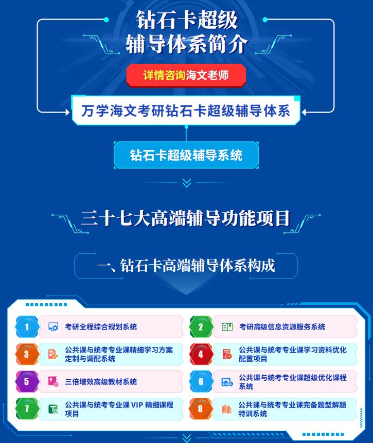 钻石卡高端辅导体系针对考研全程所有关键环节和核心要素,提供深度辅导特训、高端资源支持与多维精细管控,从而帮助学员大幅度提升考研学习效率与成功概率。