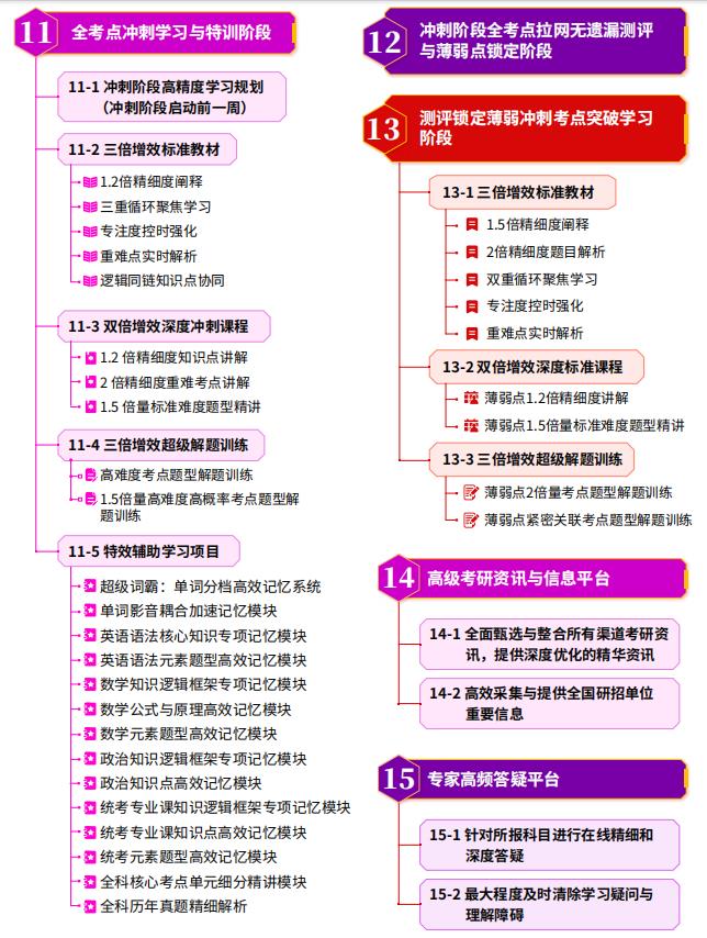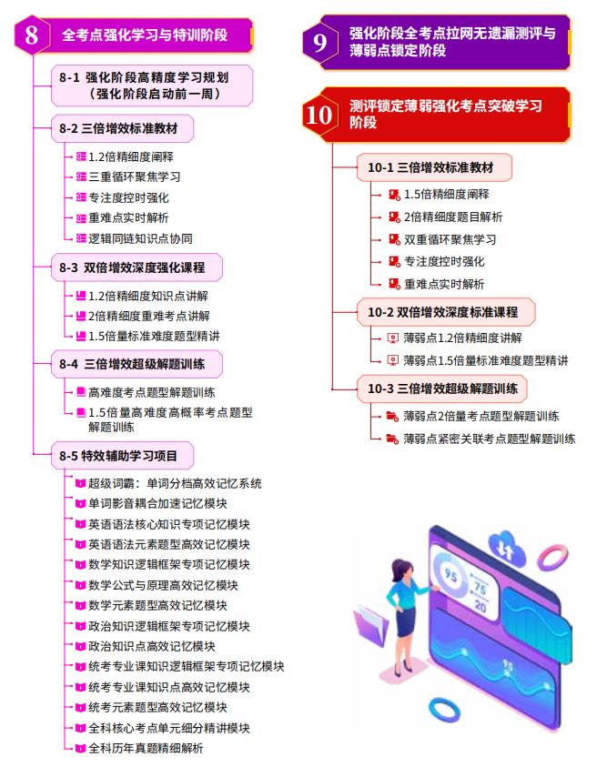 这是中国考研行业历史上大投资研发的先进课程系统,根据全考点拉网测评锁定的考生薄弱考点,智能化精准配置推送针对性高品质精讲课程,透彻解析薄弱考点,帮助考生迅速实现理解突破和深度掌握。