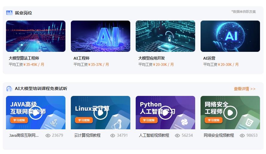 企业对大模型相关岗位人才求贤若渴,薪资持续走高,AI运营薪资平均值约18457元,AI工程师薪资平均值约37336元,大模型算法薪资平均值约39607元。并且据智联招聘统计,本月大模型相关岗位总需求量上涨169%。