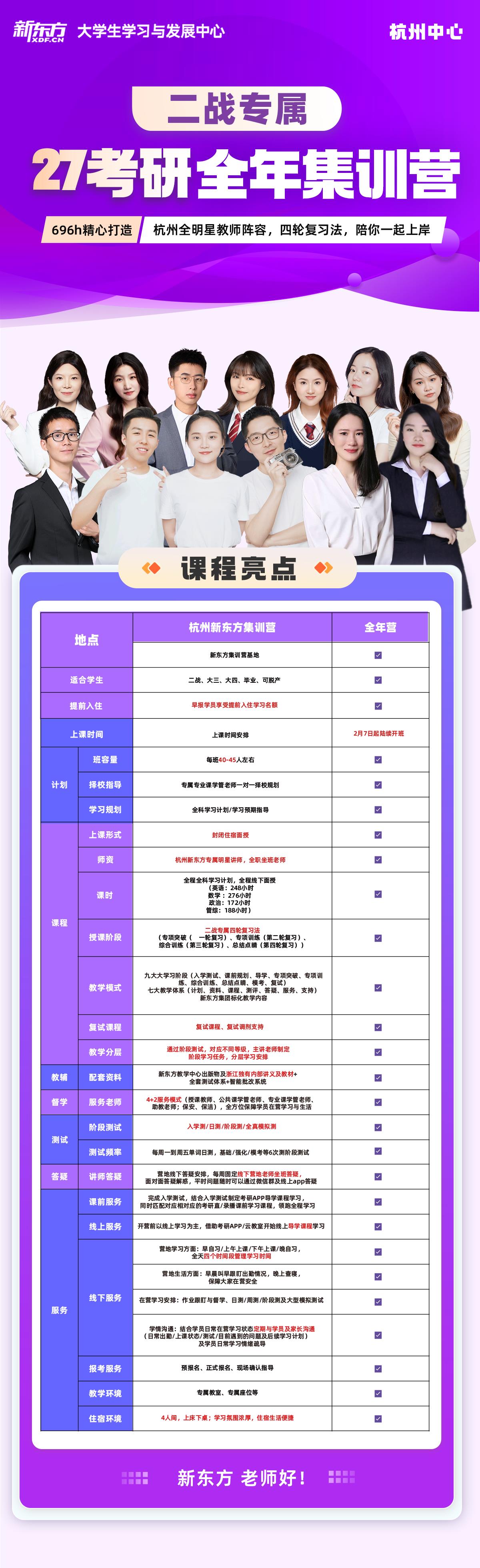 考研集训营为应往届考研备考学员提供全年全科全程一站式备考学习规划,致力于帮学员解决基础弱、方法少、效率低、习惯差、需要浓厚学习氛围等备考问题,是集课前、课中、课后全程学习、教学服务、身心健康、生活管理于一体的沉浸式学习高效备考方案,全程提升学员综合应试能力,助力学员考研目标达成。