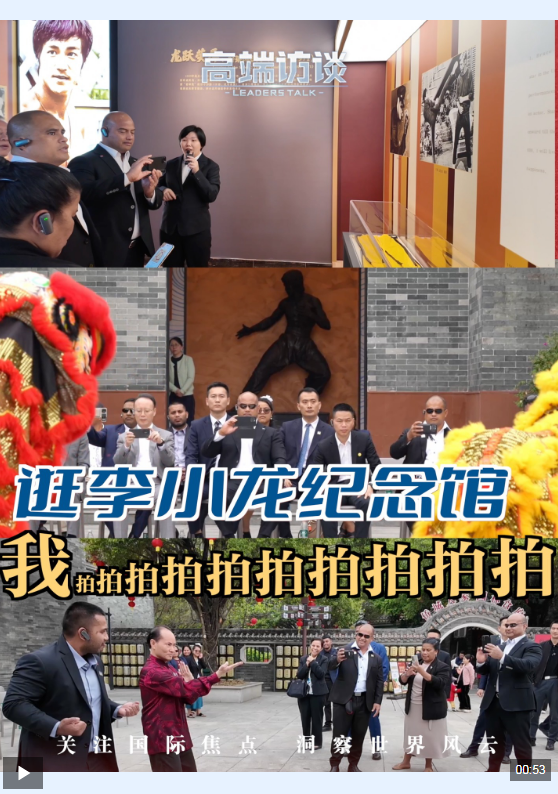 2月12日,瑙鲁总统阿迪昂到访了广东佛山李小龙纪念馆。看李小龙展览、看舞狮、看武术,瑙鲁总统不停拍拍拍~[详细]