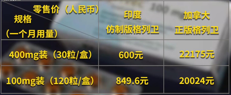 印度版格列卫售价600元,而加拿大的正版格列卫售价在20000元左右。