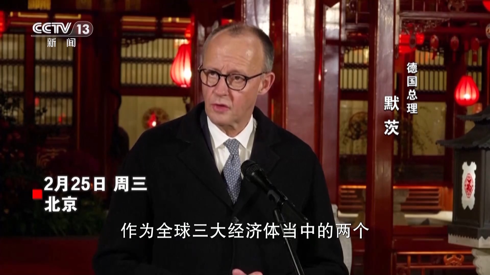 德国总理 默茨:作为全球三大经济体当中的两个,我们之间的贸易往来不光为我们自己,也为更广阔的世界带来了巨大动力。我此访也清楚表明,这里蕴含着巨大的潜力。