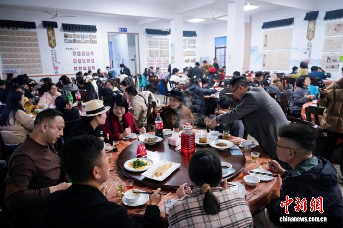 中新网湖州12月21日电(黄彦君 倪晶)冬至前后,浙江省湖州市吴兴区埭溪镇茅坞村迎来一年中最热闹的时刻——一场场年猪饭拉开帷幕,村民们分工协作准备食材,数千名游客“沉浸式”体验地道民俗,浓厚的年味在山野间升腾。