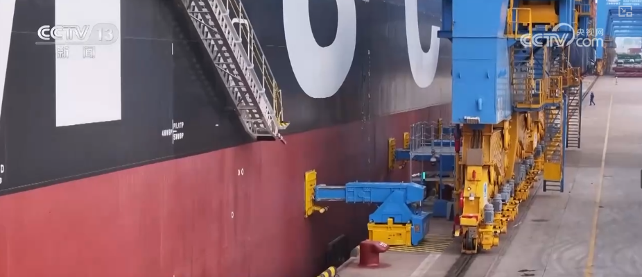 工作人员介绍,这一套系统让传统方式30分钟的作业时间缩短到在30秒。您可别小看这30秒的时间,预计全年缩短靠泊时间超200小时,相当于一个泊位全年新增10余条船的作业产能。